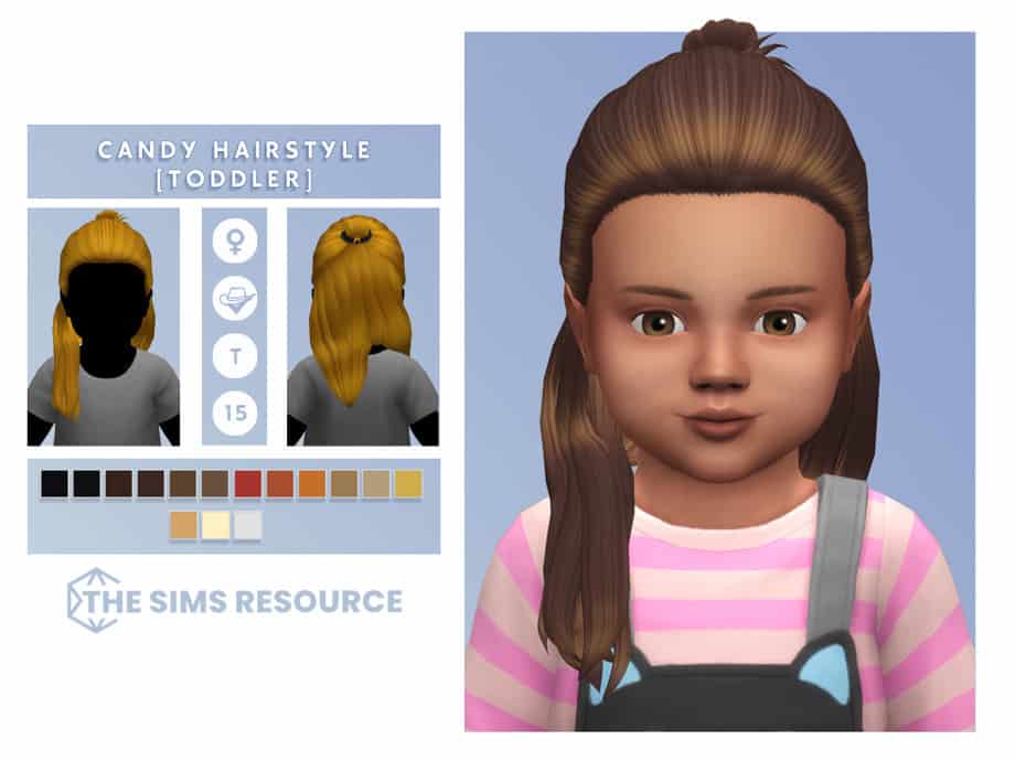 Candy Hairstyle is a long hairstyle for female toddler sims. This hair has 15 EA colors, compatible with hats and included in Specular, and Normal maps.